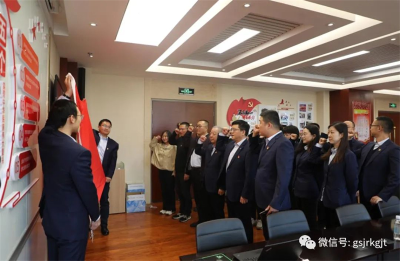 最后,参会全体党员面向党旗重温了入党誓词。集团财务总监第文涛,省财政厅金融处副处长俞刚等参加活动。