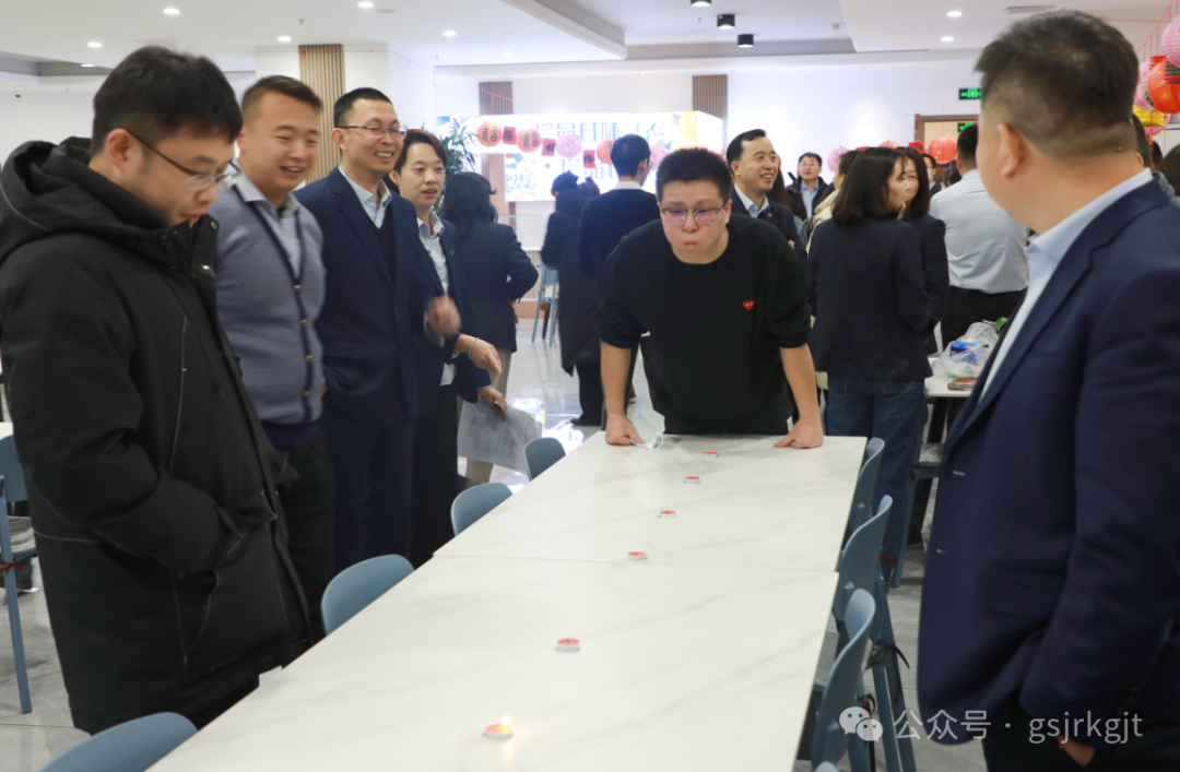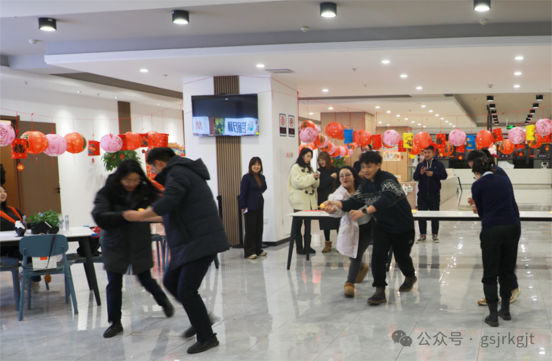 高高挂起的五彩灯笼和谜题,将活动现场装点得喜庆热闹;职工们兴致勃勃,在“单独行动”或“团队协作”下争分夺秒猜谜答题;轻松有趣的各类竞技小游戏,将欢乐气氛直线“拉满”。为增强本次活动的趣味性,除精心准备灯谜题目以外,还设置了“元宵”接力赛、吹蜡烛、耐力俯卧撑、踢毽子、抢椅子、数数抱团等趣味游戏,激发了广大职工的参与热情和积极性。