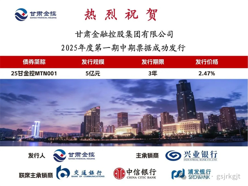 2025年6月10日,IM在线体育成功发行2025年度第一期中期票据“25甘金控MTN001”,规模5亿元,期限3年,票面利率2.47%,全场倍数2.72倍,体现出市场对集团稳健经营和良好偿债能力的信心。