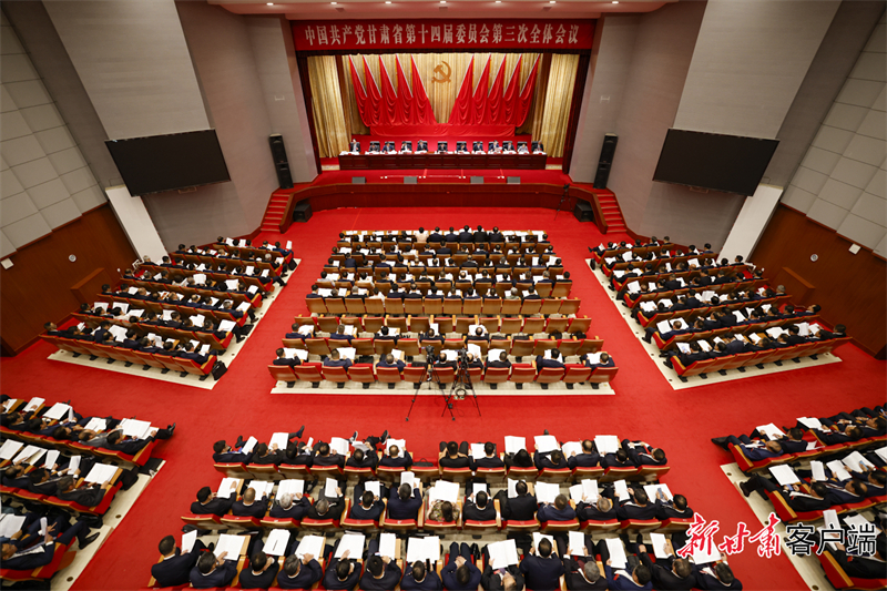 中国共产党甘肃省第十四届委员会第三次全体会议7月31日在兰州举行。全会以习近平新时代中国特色社会主义思想为指导,深入学习贯彻党的二十大精神,全面落实习近平总书记对甘肃重要讲话重要指示批示精神,总结上半年工作,研究加强生态文明建设工作,安排部署下半年和今后一个时期工作。全会听取和讨论了省委常委会工作报告,审议通过了《中共甘肃省委关于进一步加强生态文明建设的决定》、《中国共产党甘肃省第十四届委员会第三次全体会议决议》。全会递补了省委委员。