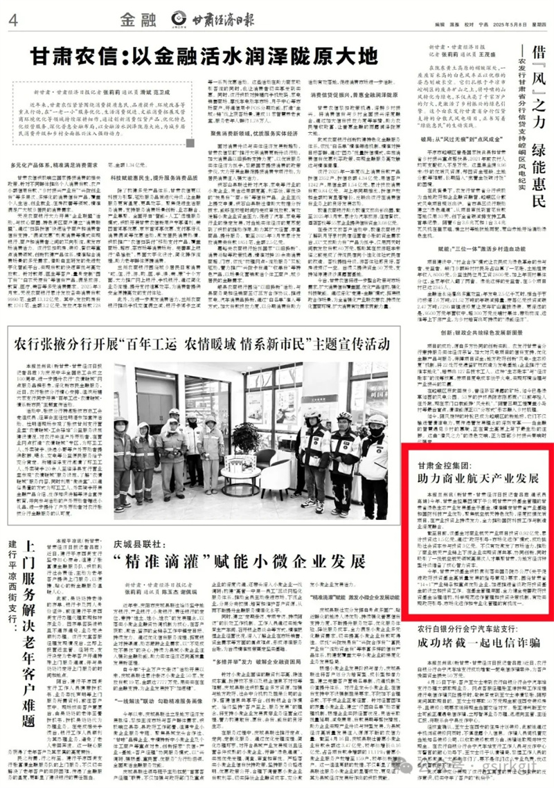 今年,IM在线体育旗下子公司甘肃产投基金管理的甘肃省绿色生态产业发展基金子基金,精准锚定甘肃省产业基础和国防科技产业优势,聚焦航空航天特色优势,深度挖掘优质项目,在产业投资上持续发力,全力推动国防科技工作与制造业深度融合。