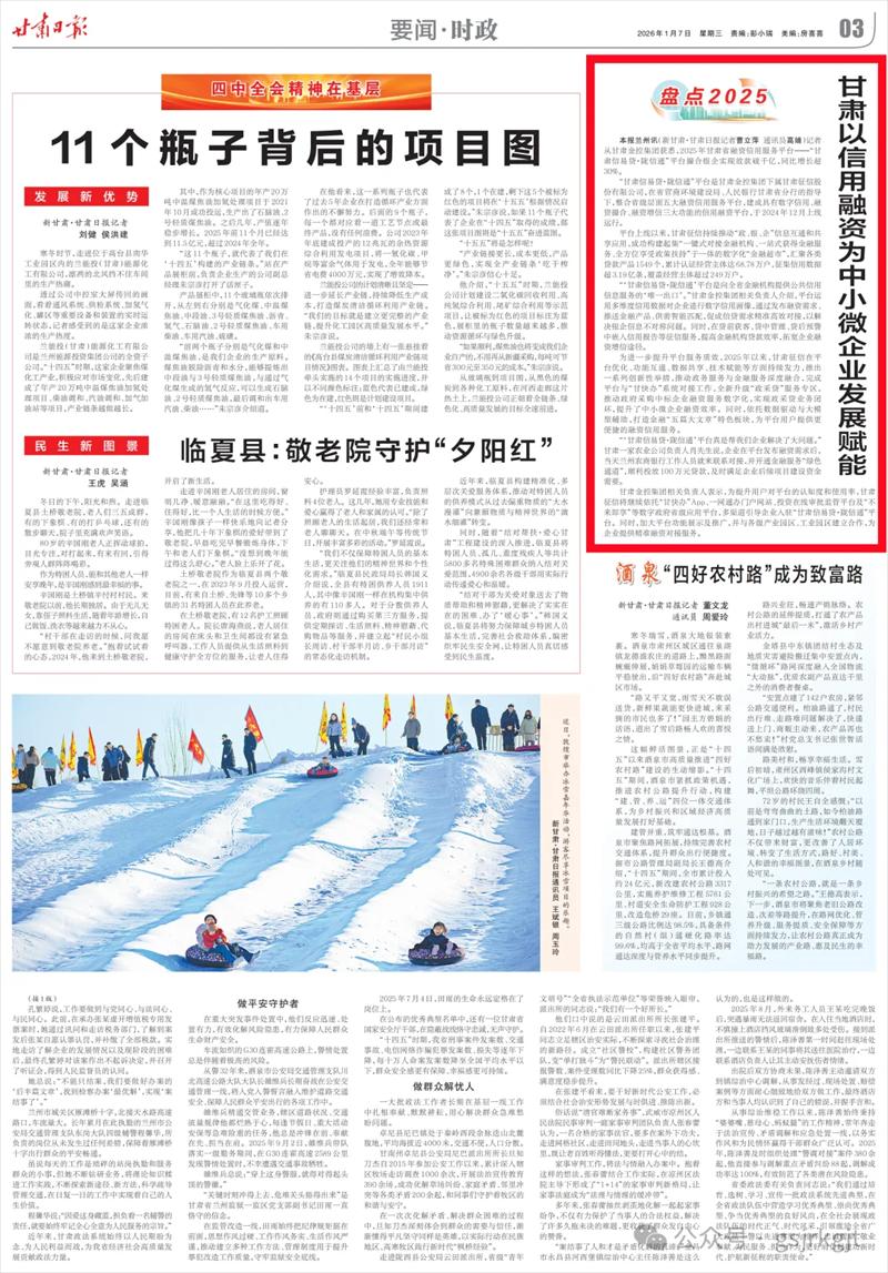 新甘肃客户端兰州讯(新甘肃·甘肃日报记者 曹立萍 通讯员 高婧)记者从IM在线体育获悉,2025年甘肃省融资信用服务平台——“甘肃信易贷·陇信通”平台撮合银企实现放款破千亿,同比增长超30%。