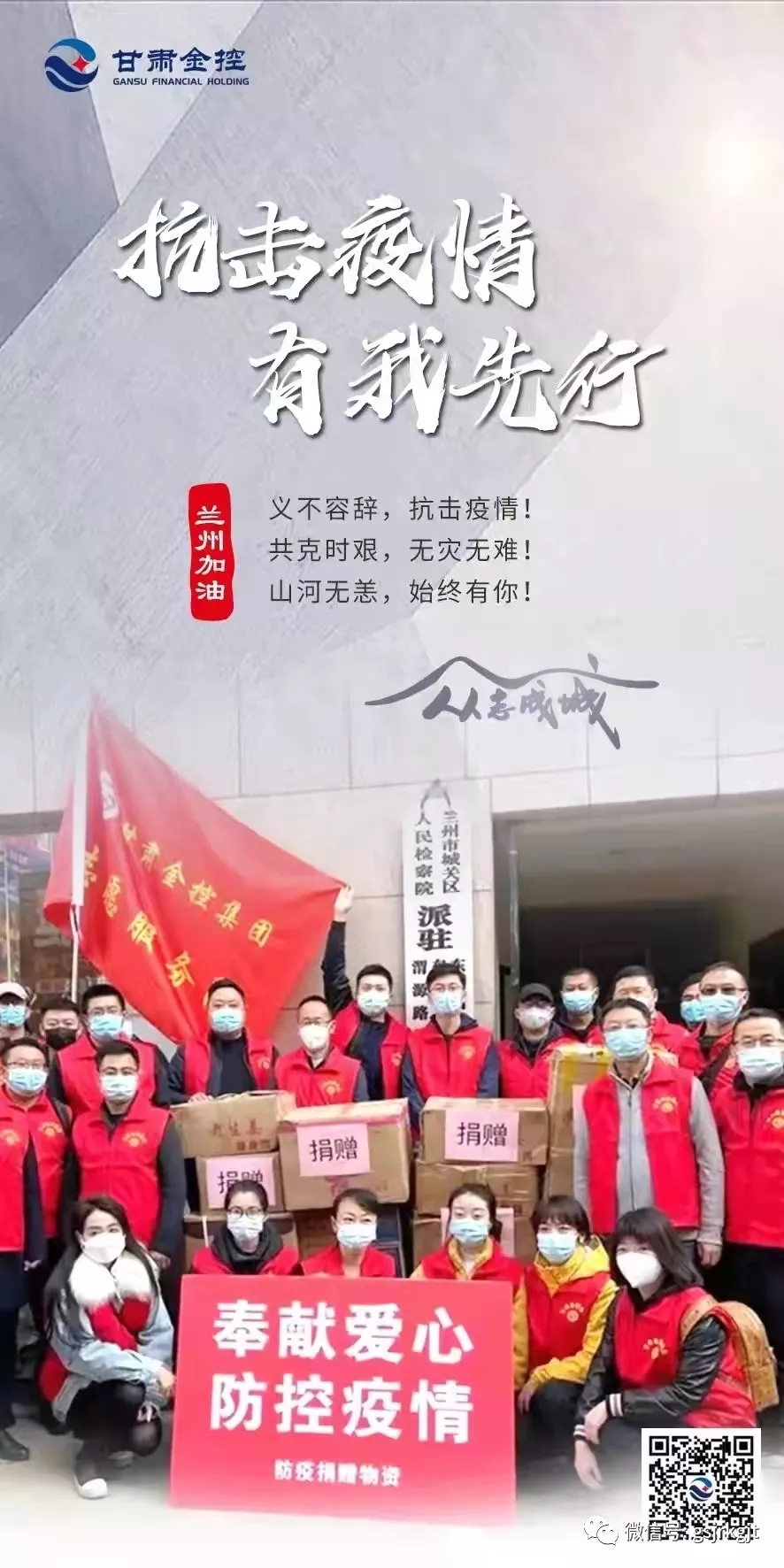 十月的金城,还没来得及走出国庆的喜悦,突袭而至的“德尔塔”病毒让整个城市按下了“暂停键”,车水马龙的兰州市显得格外静寂,美丽的黄河之滨也略失姿色,唯有满城鲜红的党旗给人以信念,白衣铠甲的逆行者给人以信心,“兰州加油、抗疫必胜”的强音不断响彻金城大地。十月“抗疫之战”打响以来,全省各行各业主动扛起责任,医护人员昼夜奋战、公安民警奋勇当先,国企勇挑重担,民企积极出力,科研人员奋力攻关,党员干部投身志愿一线,全城的每一个人都在竭尽全力为抗疫贡献自己的一份力量,共同描绘着一幅同舟共济的抗疫画卷。陇原融资租赁公司就是这其中的一支队伍,在IM在线体育党委的坚强领导下,全体员工积极服从疫情防控大局需要,全力夯实金融支持疫情防控坚强后盾,主动投身疫情防控的严峻斗争中。