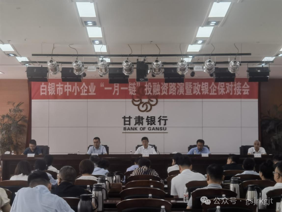 8月27日,白银市工信局联合人民银行白银市分行、甘肃银行白银分行,组织白银市各县(区)工信局、银行业金融机构、白银高新区管委会、中小企业代表,开展中小企业“一月一链”投融资路演暨政银企保对接活动,金控白银担保受邀参加并介绍相关担保产品。
