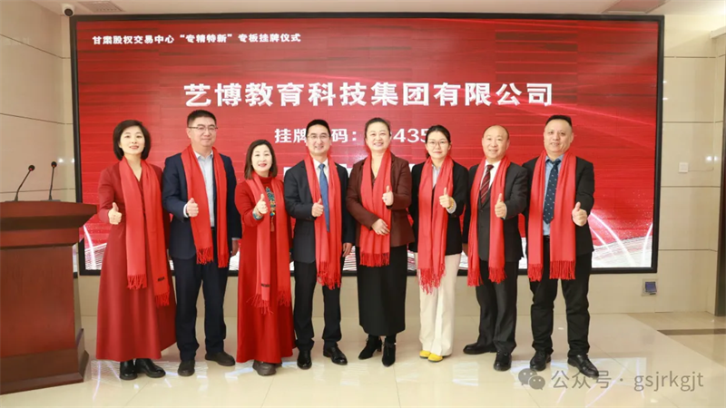 一元复始,岁华新至。2026年开篇之月,艺博教育科技集团有限公司(以下简称“艺博集团”)在甘肃省“专精特新”专板挂牌仪式圆满举行。艺博集团董事长卢永锋及甘肃股权交易中心主要负责任人出席仪式并致辞,艺博集团总经理魏明雪及核心骨干共40余人参加此次活动。